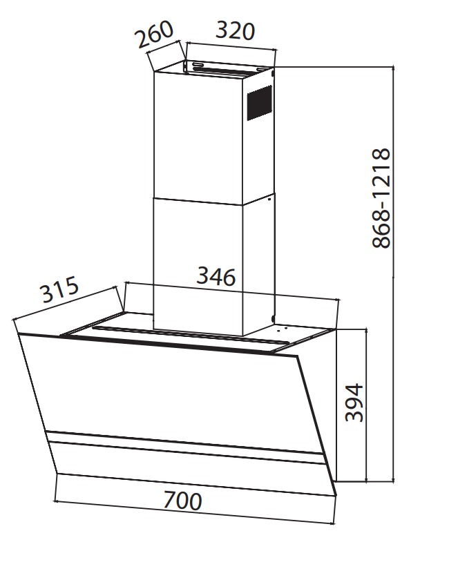 Thông số lắp đặt máy hút mùi Latino LT-V700DC Athena