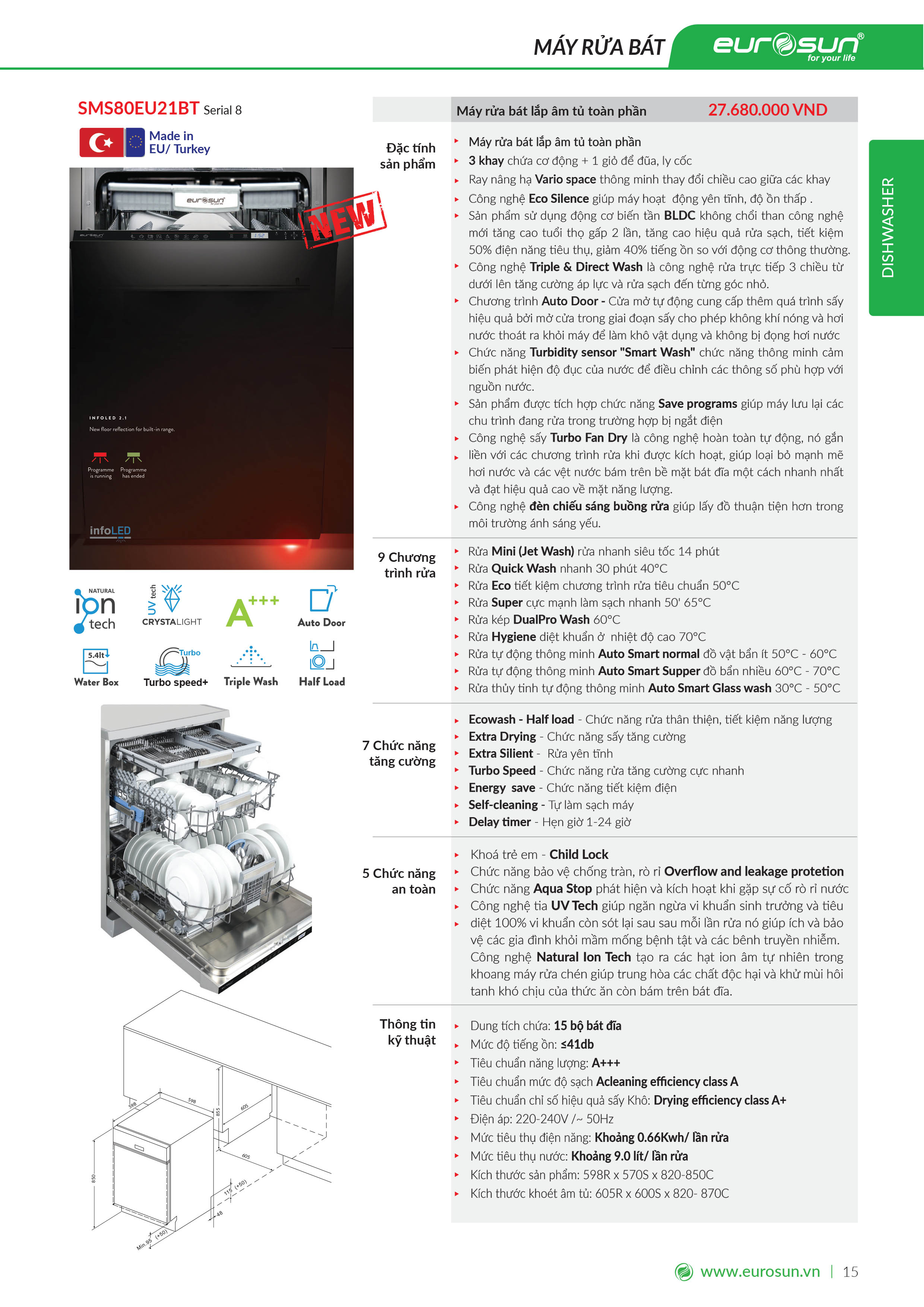 Thông số chi tiết Máy rửa bát Eurosun SMS80EU21BT