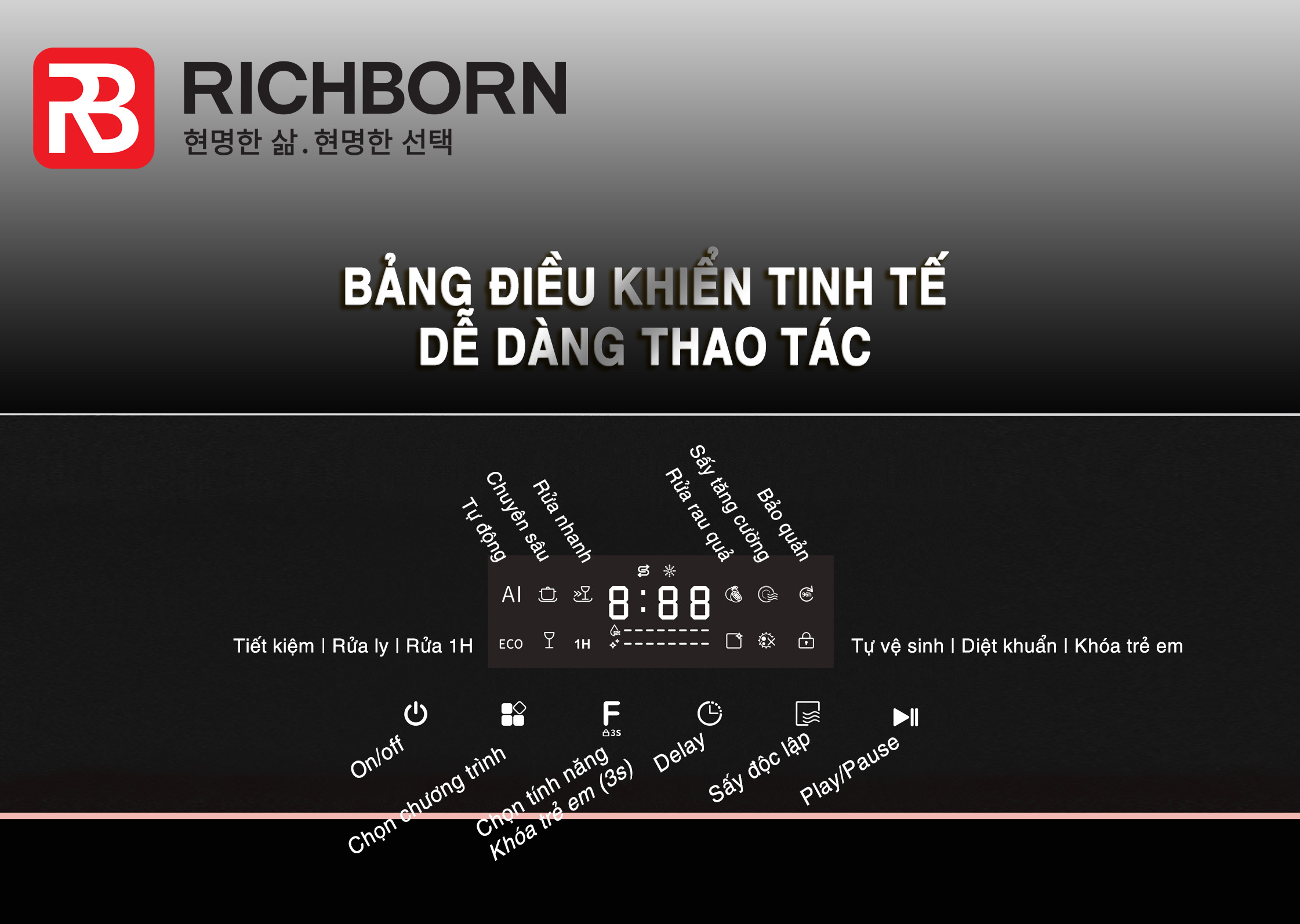 - Rửa thông minh AI: "Turbidity Sensor Wash” 60˚C Cảm biến độ đục của nước