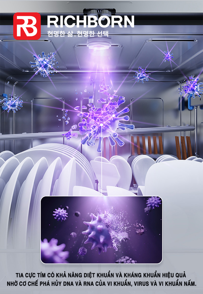 - Diệt khuẩn UV: "UV light" Tiêu diệt tới 99,99% vi khuẩn