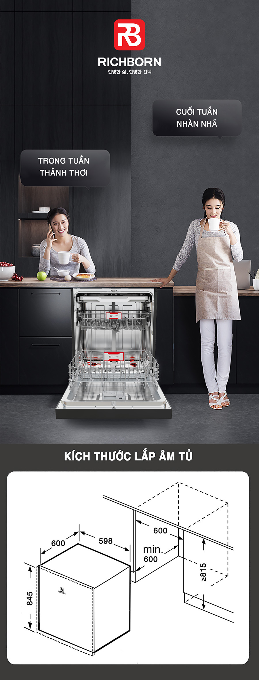 - Kích thước lắp âm: ≥ C815xR600xS575mm