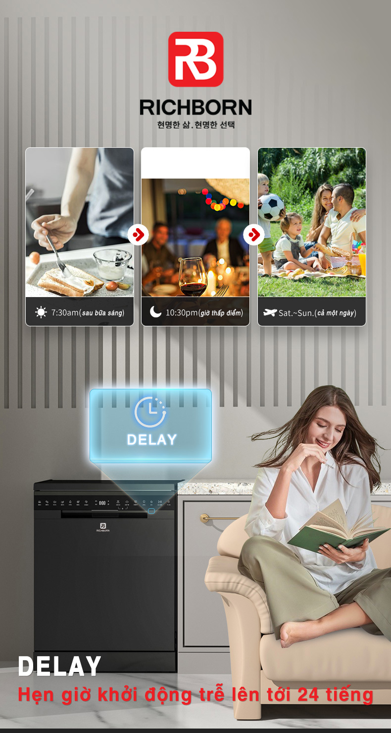- Hẹn giờ trễ: "Delay" trì hoãn và kiểm soát thời gian khởi động tới 24 tiếng