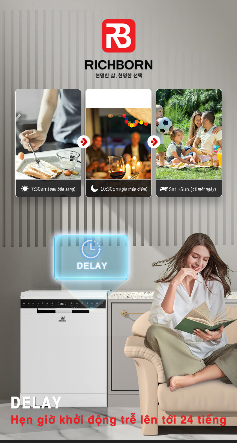 - Hẹn giờ trễ: "Delay" trì hoãn và kiểm soát thời gian khởi động tới 24 tiếng