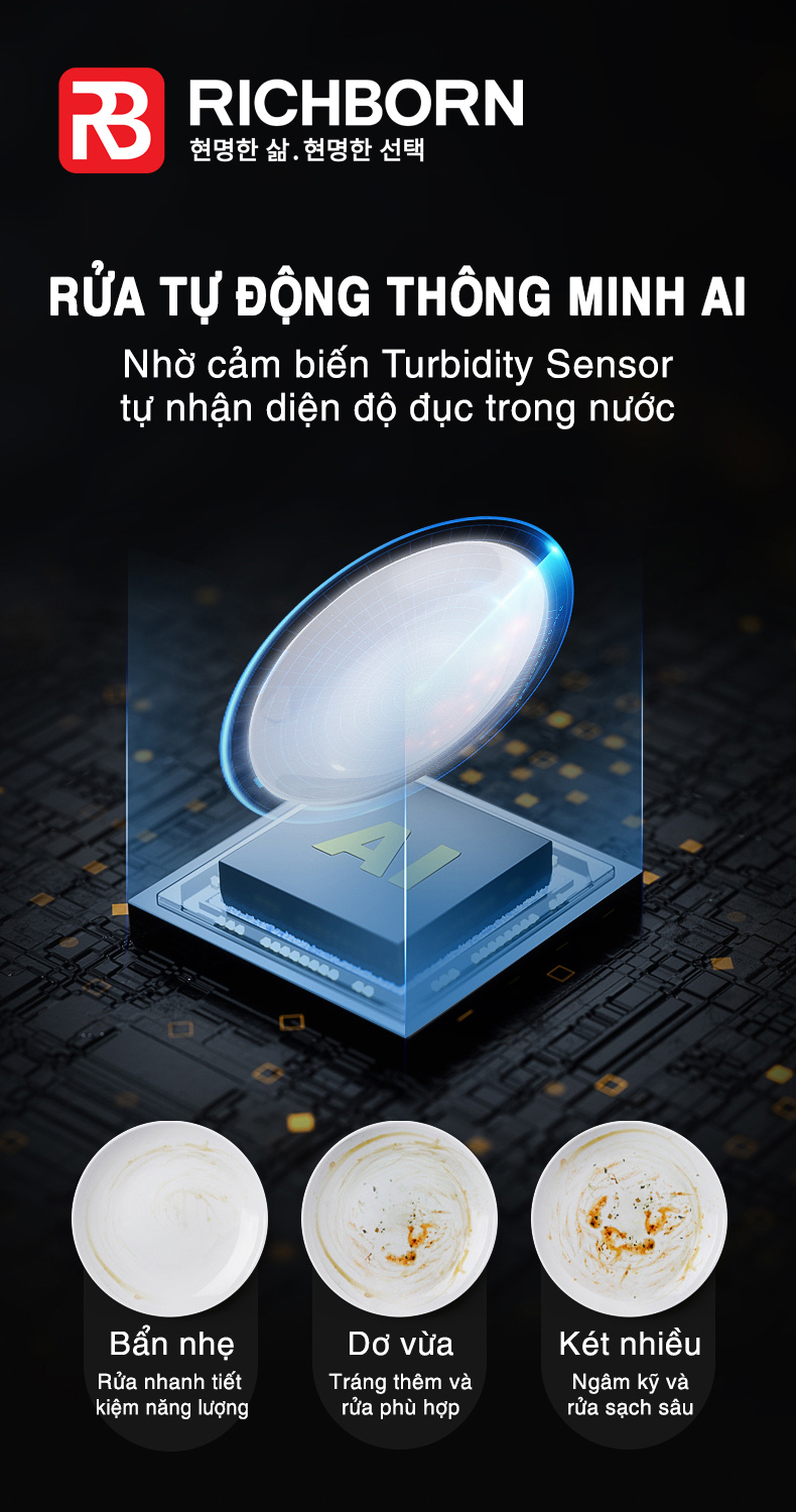 - Rửa thông minh AI: "Turbidity Sensor Wash” 60˚C Cảm biến độ đục của nước