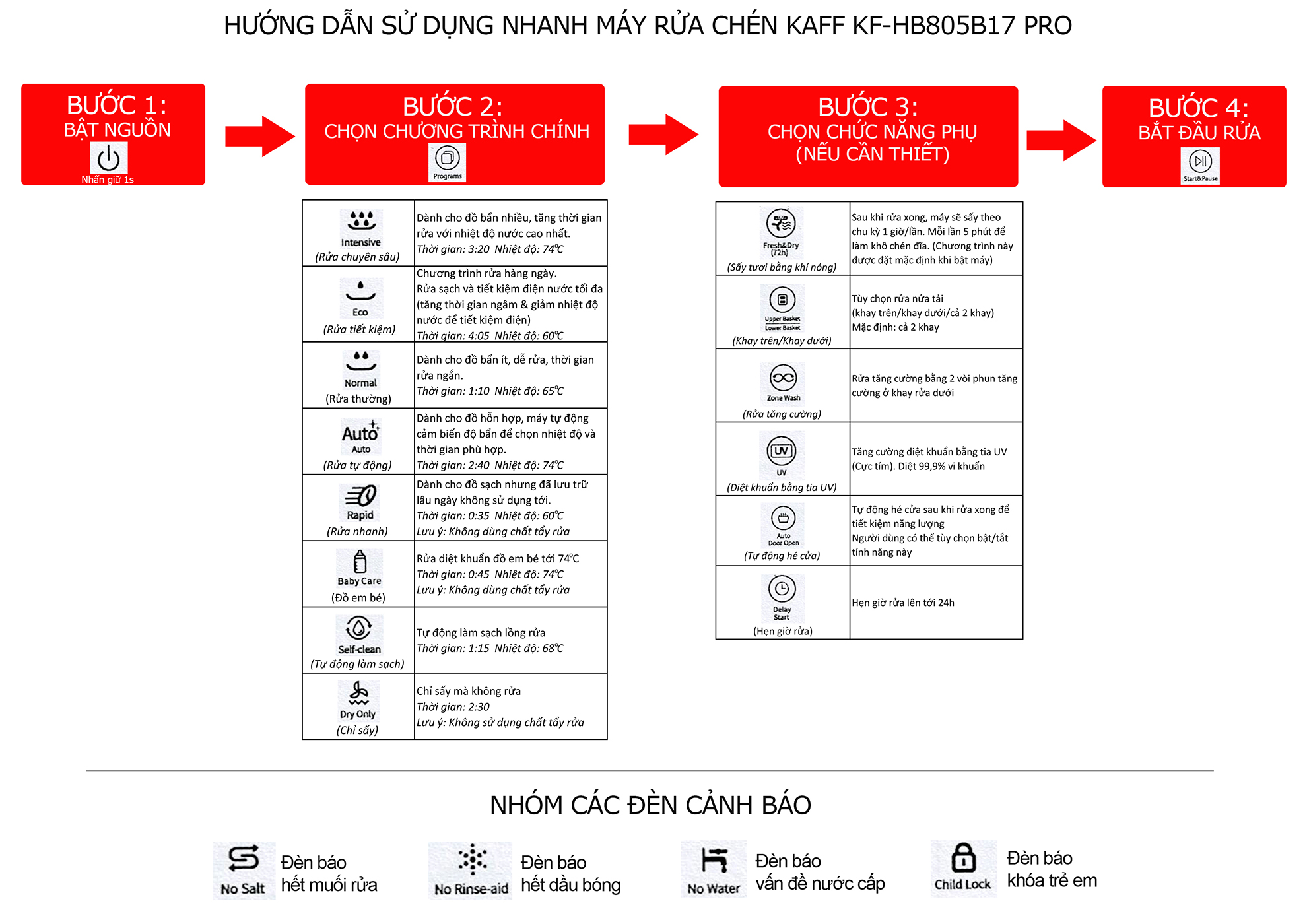 HDSD nhanh máy rửa chén KAFF KF-HB805B17 Pro