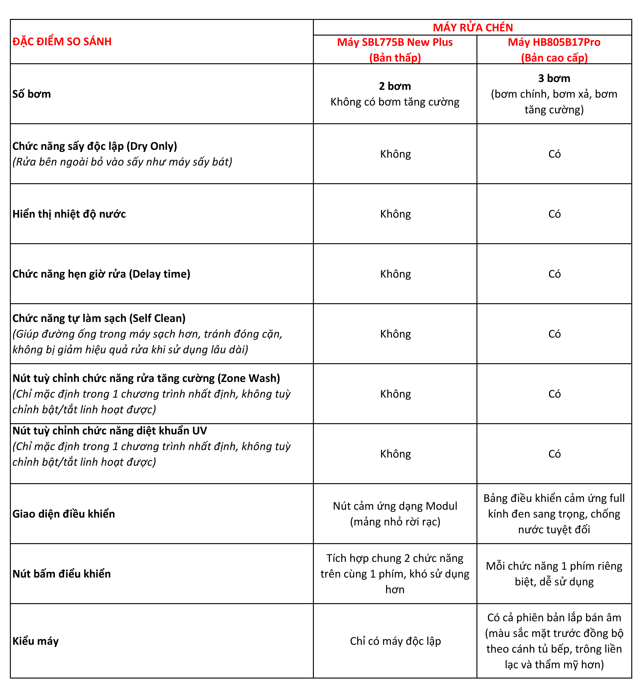 So sánh điểm khác nhau giữa model HB805 và Model SBL775B New Plus