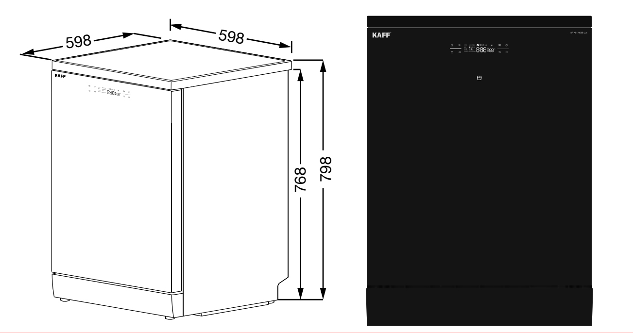 Kích thước máy rửa chén KAFF KF-S17805B Lux