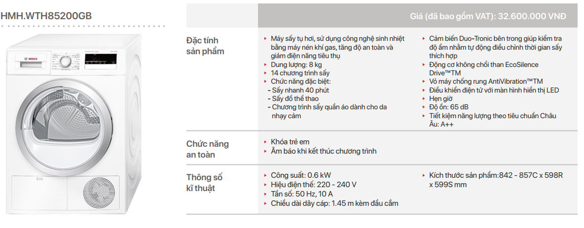 + Tiêu chuẩn tiết kiệm năng lượng: A++ (Châu Âu)