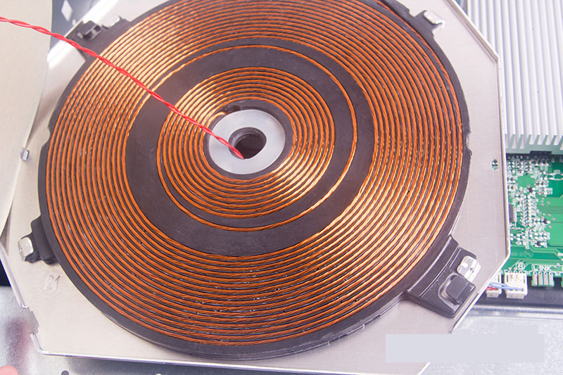 Cấu tạo mâm từ trên bếp từ gồm những cuộn dây đồng sinh ra các dòng dao động từ