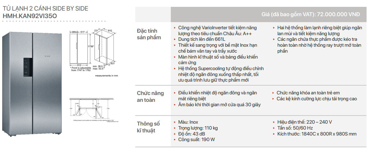 - Công nghệ VarioInverter tiết kiệm năng lượng theo tiêu chuẩn Châu Âu: A++