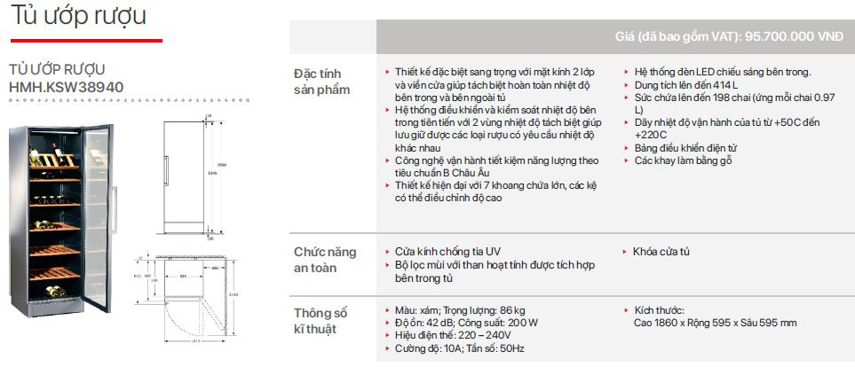 | Tên sản phẩm | Tủ rượu Bosch KSW38940 |