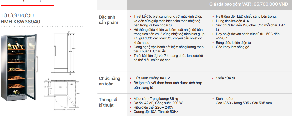 - Hệ thống điều khiển và kiểm soát nhiệt độ bên trong tiên tiến với 2 vùng nhiệt độ tách biệt giúp lưu giữ được các loại rượu có yêu cầu nhiệt độ khác nhau